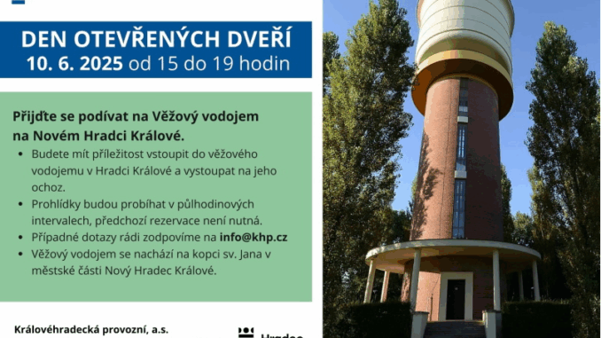 Praha 2. června 2025 (PROTEXT) – Přijďte se podívat v úterý 10. 6. 2025 od 15 do 19 hodin na Věžový vodojem na Novém Hradci Králové.