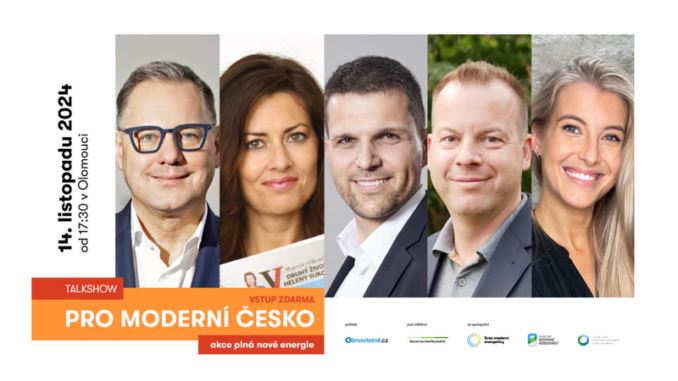 Proč Česko postihly nebývale silné povodně a jak se jim bránit? Jak vytvořit udržitelnější ekonomiku? A jaká budoucnost čeká Olomoucký kraj? Nejen o tom budou už 14. listopadu v olomoucké Pevnosti poznání odpovídat ministr životního prostředí Petr Hladík (KDU-ČSL), modelka a influencerka Jitka Nováčková, generální ředitel ČEZ ESCO a olomoucký rodák Kamil Čermák, meteorolog České televize Michal Žák a ekonomická komentátorka Hospodářských novin Julie Hrstková. Akcí Pro moderní Česko: talkshow plná nové energie bude provázet moderátorka Seznam Zpráv Marie Bastlová. Na talkshow o den později naváže odborná konference určená zástupcům měst, obcí či firem, která napoví, jak nejlépe využít možnosti posílení energetické soběstačnosti na půdorysu příkladů dobré praxe.
